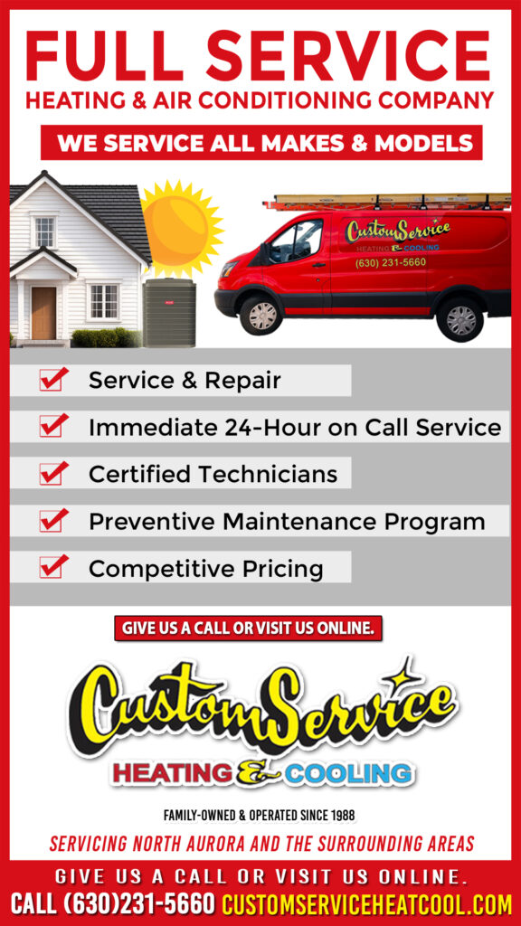 Welcome to Custom Service Heating & Cooling, your local experts for reliable HVAC services in North Aurora and Kane County. Whether you need fast furnace repair, air conditioning installation, or emergency service, our licensed professionals are available 365 days a year to keep your home comfortable.