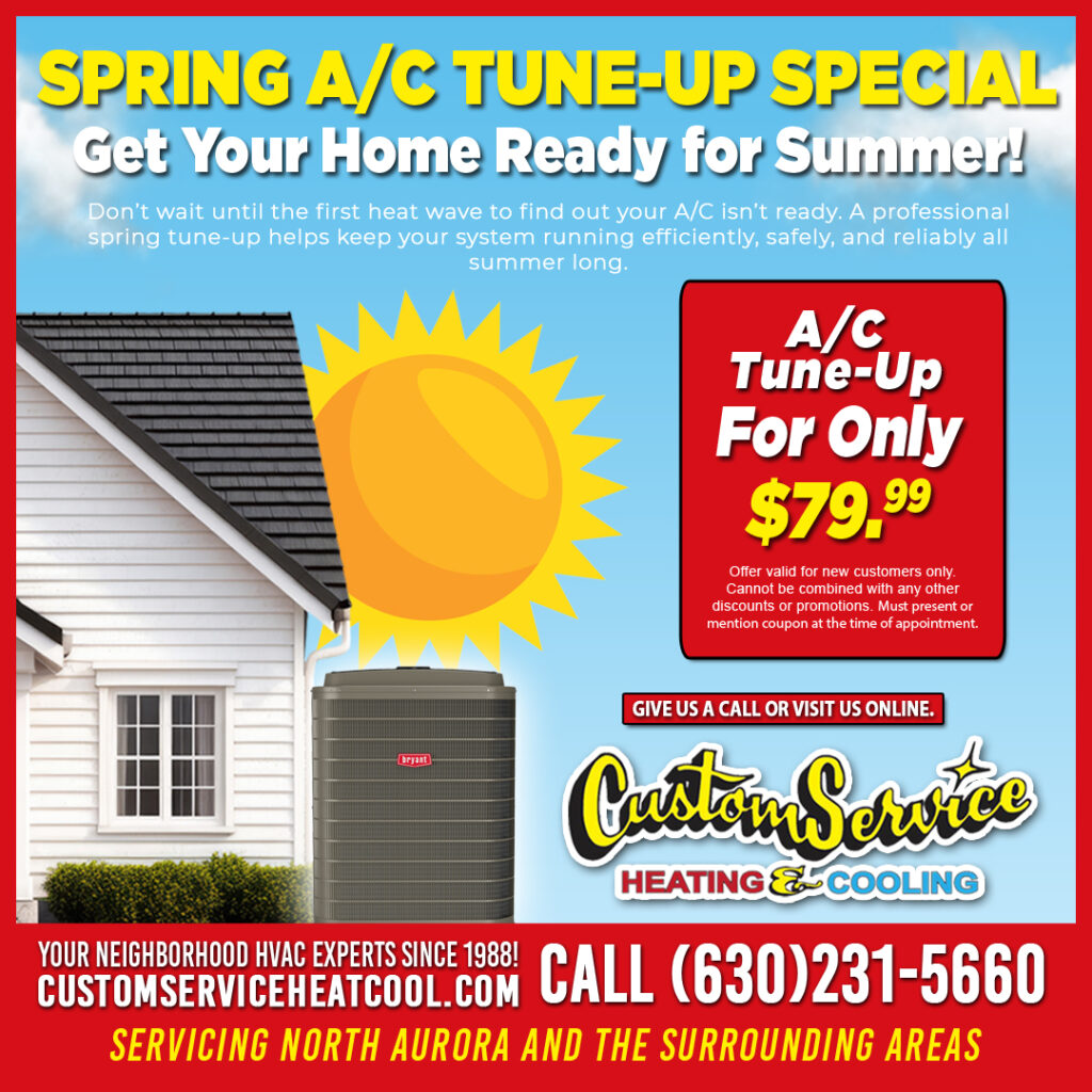 Custom Service Heating and Cooling has proudly served homeowners across North Aurora and surrounding communities for more than 35 years. As a family-owned company, we focus on honest pricing, dependable service, and long-term relationships with the homeowners we serve.